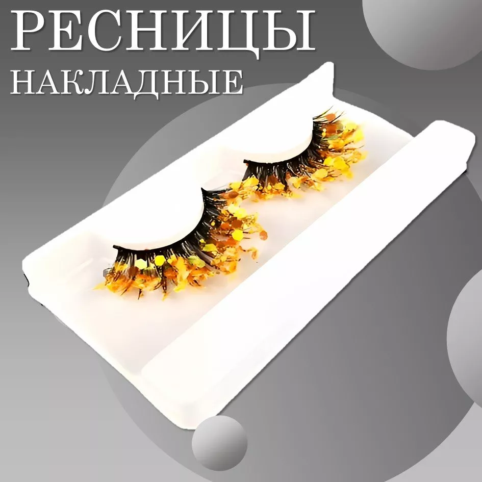 Роскошные накладные ресницы с мерцающими блёстками золотистого оттенка, создающие неповторимый праздничный образ. Идеальное решение для особых случаев и вечерних мероприятий.