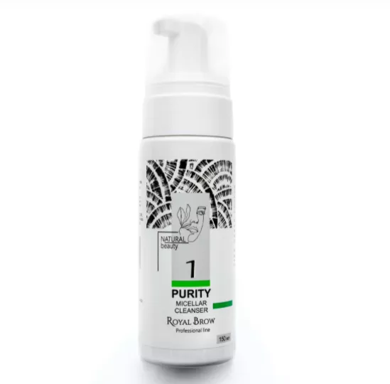 Purity Micellar Cleanser Royal Brow с экстрактом лайма - ШАГ 1 в процессе подготовки бровей к окрашиванию. Бережно очищает и удаляет косметические средства с кожи и волосков, сохраняя баланс гидролипидной оболочки.