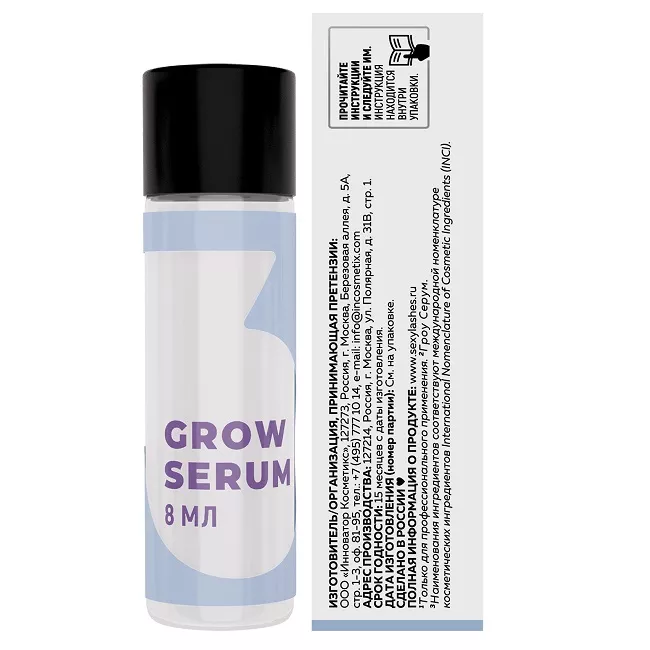Сыворотка GROW SERUM применяется на завершающем этапе реконструкции ресниц и бровей.
