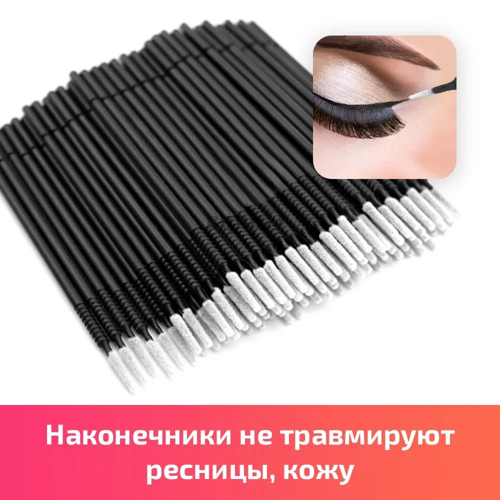Микробраши по размеру длиннее ватных палочек, на конце мягкая щетина, которая не повреждает хрупкие ресницы и веки. Аппликаторы для мастера маникюра или бровиста незаменимы и значительно упрощают процедуру ламинирования бровей и ресниц, биозавивки, нанесения полуперманентной туши, окрашивания краской и хной, наращивания ресниц, нанесения средства на ноготки. Микробраши для ногтей не теряют ворсинки, изготовлены из гипоаллергенного материала, абсорбируют жидкости, полностью отдавая их при нанесении. Упаковка 100 штук. Размер головки брашей обеспечит быструю выкладку ресниц на валик при ламинировании. При наращивании ресниц снимать ресницы удобнее и быстрее.
