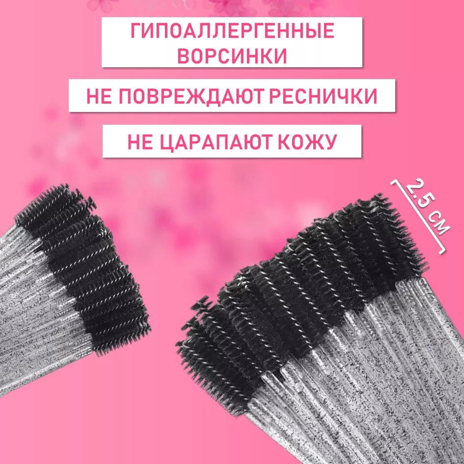 Ворсовые щеточки ресниц с блестками черные 200 штук средняя упаковка регулярное использование салонов. Щеточки для туши одноразовые декоративные черные блестки разделение укладка ресниц аккуратный макияж. Ворсовые щеточки блестящие аппликаторы профессиональные инструменты создание идеального вида ресниц. Одноразовые щеточки гигиена удобство применения мастера визажисты косметологи салоны красоты. Щеточки ресниц 200 штук оптимальное количество активно работающих мастеров.