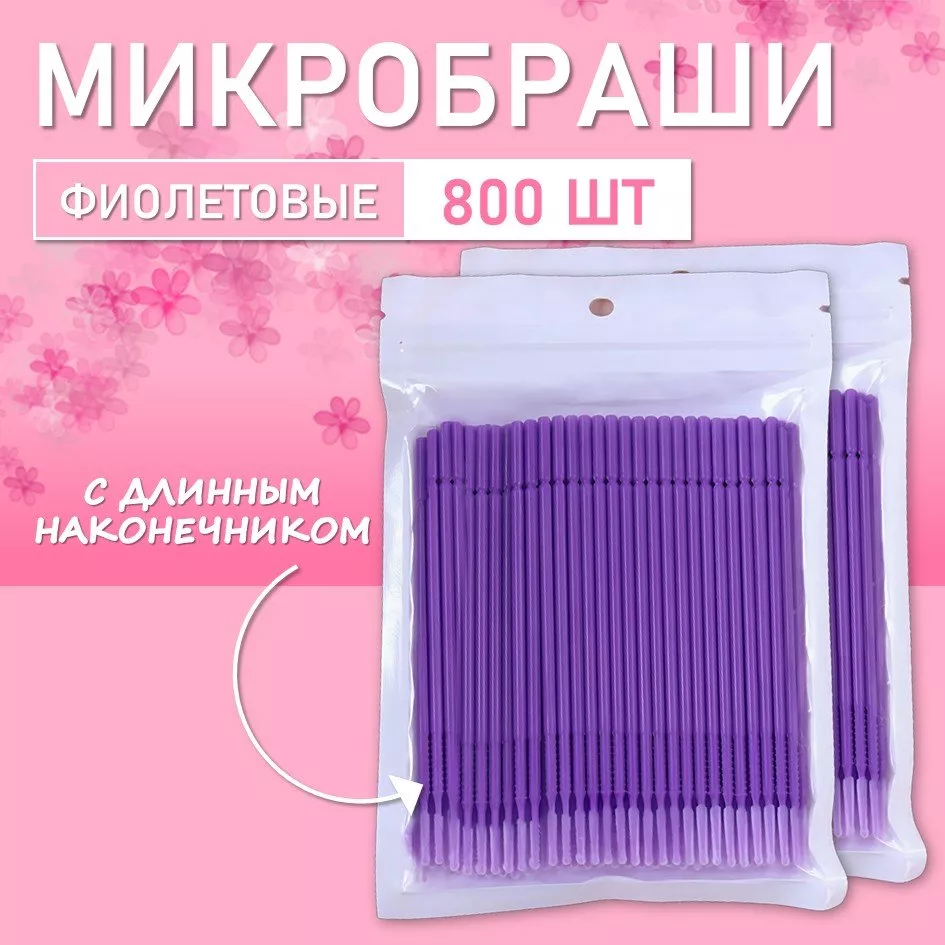 Микробраши фиолетовые удлиненный наконечник 800 штук профессиональные аппликаторы маникюра ресниц бровей. Микробраши безворсовые длинные заменяют ватные палочки ламинирование биозавивка окрашивание наращивание ресниц. Аппликаторы микробраши 1 см наконечник мягкие щетинки деликатное нанесение средств защита глаз. Микробраши для мастеров незаменимый инструмент упрощение процедур полуперманентная тушь краска хна. Микробраши качественные гипоаллергенные абсорбирующие свойства экономичная упаковка 800 штук салонов.