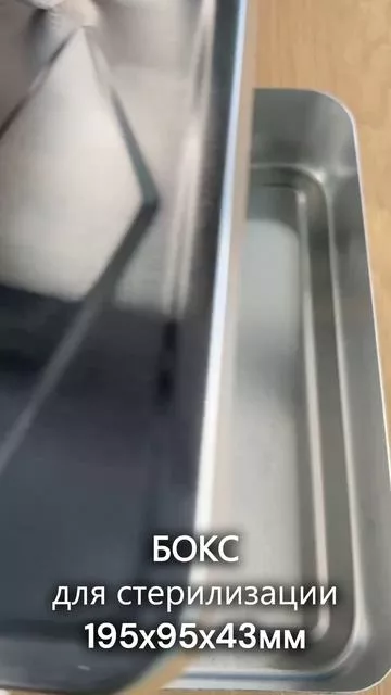 Бокс из высококачественной стали оснащен плотно закрывающейся крышкой. Невосприимчив к воздействию химических составов дезинфицирующих средств. Габариты: 195х95х43мм Объем: 50 мл