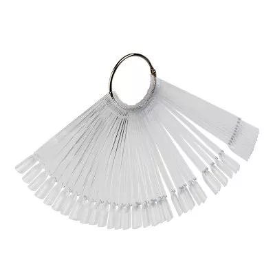 Дисплей предназначен для демонстрации цветов nail-материалов или дизайна. Аксессуар выполнен из прочного пластика, который позволит использовать его в работе долгое время. Компактный «Веер» абсолютно не занимает места, а включает в себя целых 50 демонстрационных типса. Удобное крепление легко открывается, позволяя мастеру пополнять коллекцию цветов своих материалов.