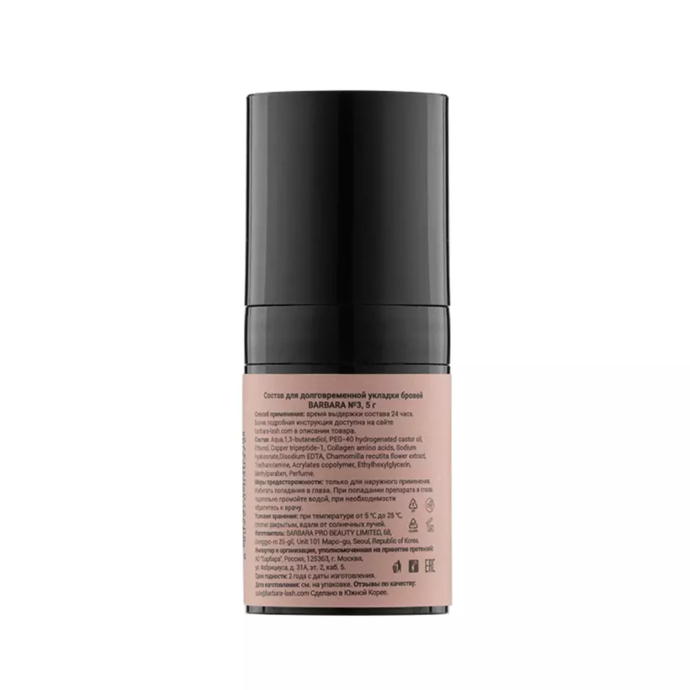 Состав №3 для долговременной укладки бровей используется для глубокого увлажнения волосков. Волоски бровей приобретают красивый естественный блеск. Благодаря удобной баночке с помпой состав легко использовать. Герметичная упаковка продлевает срок годности состава и исключает воздействие внешних факторов на свойства продукции.