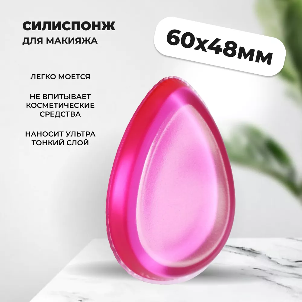 Спонж имеет каплеобразную форму, с его помощью косметические средства равномерно наносятся на все участки лица, не оставляя разводов и ярко выраженных границ. После работы спонж следует промыть, просушить. Правильный уход надолго продлит срок службы силиспонжа!