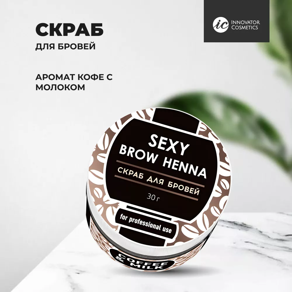 Нанесите небольшое количество скраба для бровей SEXY Brow Henna круговыми массирующими движениями. Уберите влажным диском до полного удаления скраба.