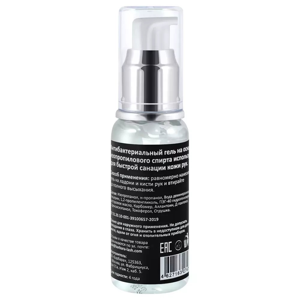 Антибактериальный гель для рук Barbara на основе изопропилового спирта используется для быстрой санации кожи рук. Содержит компоненты, которые препятствуют обезвоживанию и обезжириванию кожи рук.