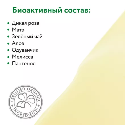 Состав: (INCI) Aqua, Illex Paraguariensis extract, Camellia Sinensis Leaf Extract*, Rosa Сanina Flower Extract, Taraxacum Officinale (Dandelion) Extract, Melissa Officinalis Extract, Panthenol, Aloe Arberescens Leaf Extract*, PEG-40 Hydrogenated Castor Oil, Sodium Laureth Sulfate, Niacin, Parfum, Benzyl Alcohol, Methylchloroisothiazolinone, Methylisothiazolinone