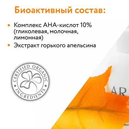 Гель-эксфолиант с фруктовыми кислотами (10%) эффективно и деликатно отшелушивает омертвевшие клетки рогового слоя эпидермиса, мягко очищает кожу, подготавливая её к дальнейшему уходу. Активно обновляет и освежает кожу, повышает её эластичность, стимулирует выработку коллагена. Гель-эксфолиант с фруктовыми кислотами заметно выравнивает поверхность кожи, улучшает ее текстуру, придает здоровый ровный оттенок. Продукт служит проводником для активных веществ, содержащихся в косметических средствах при последующем интенсивном уходе за кожей. Оптимальный рН 3,5 обеспечивает отсутствие травмирующего эффекта на кожу.