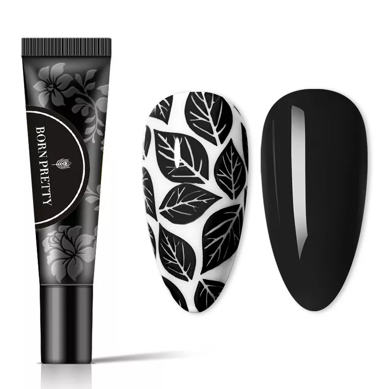 Гель-паста Born Pretty имеет среднюю консистенцию. Он не растекается в процессе создания рисунка, что делает его незаменимым при работе со сложными художественными композициями, требующими длительной многократной прорисовки. Густота краски оптимально подходит для стемпинга и способствует оптимальному расходованию материала: нанеся ее на пластину, а затем, перенеся рисунок на штамп, можно сделать до 5-ти четких оттисков (каждый раз вновь перенося рисунок на штамп), то есть, буквально проработать все ноготки одной руки минимальным количеством краски.