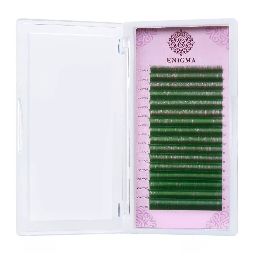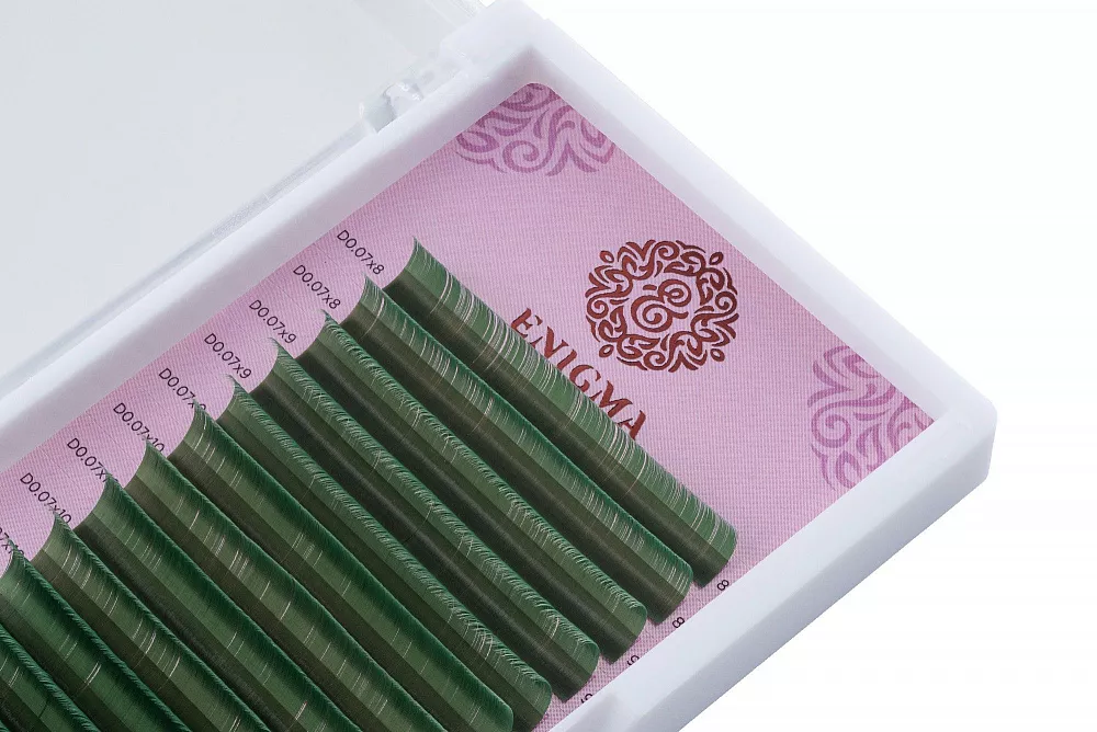 Цветные ресницы для полноформатного наращивания ENIGMA разработала впервые в истории: это линейка удобных размеров ресниц из гипоаллергенного моноволокна, с мягкой текстурой и глубоким, но не кричащим цветом.