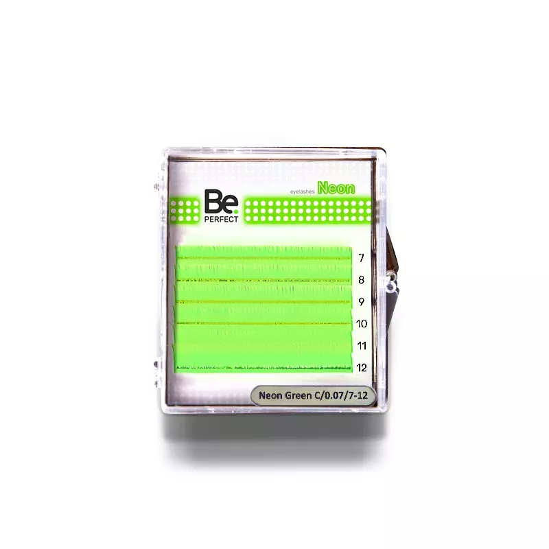 Ресницы Be Perfect Neon Green MIX применяются при наращивании ресниц профессиональными лэшмейкерами. Современное волокно позволяет добиться идеального изгиба, при этом ресницы не ломаются и легко снимаются с ленты, на которой благодаря плотному расположению помещено максимальное количество ресниц.