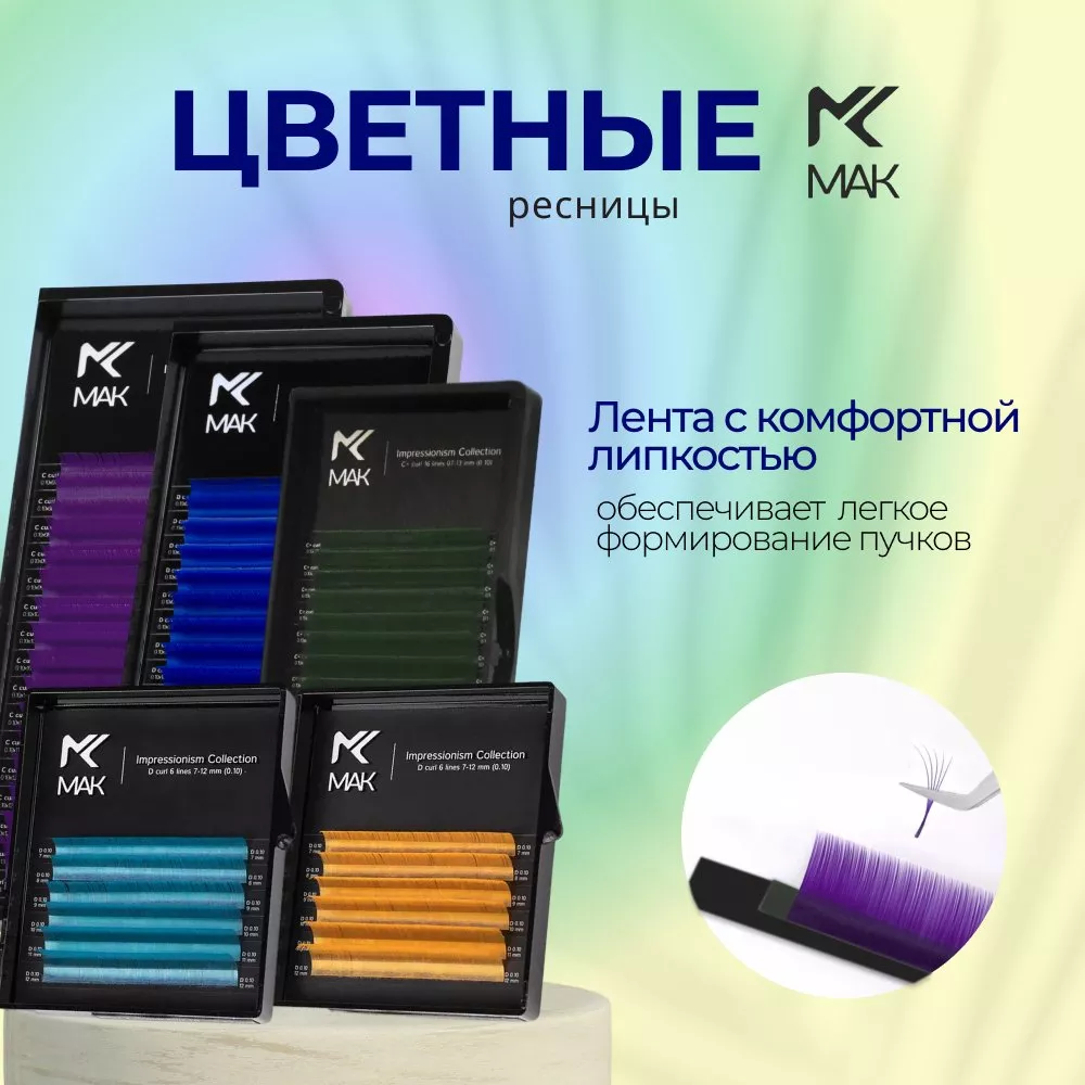 Цветные ресницы МАК в созданы для воплощения в жизнь самых смелых образов. Каждый мастер сможет раскрыть свои творческие способности, используя палитру оттенков МАК.