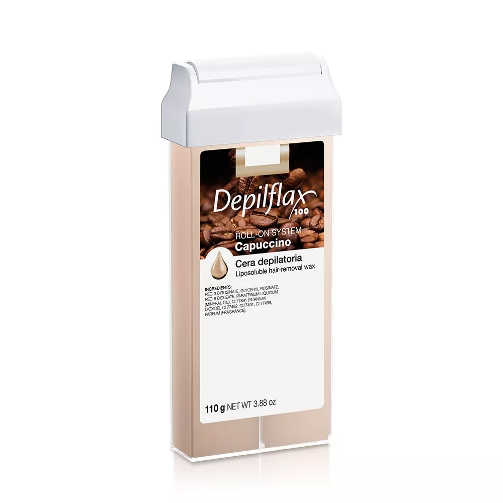 Плотный воск от бренда Depilflax100 - Капучино в картридже. Подходит для всех видов волос и чувствительной кожи. Бережно удаляет волосы, обеспечивая коже необходимое увлажнение. Обладает приятным ароматом свежезаваренного капучино.