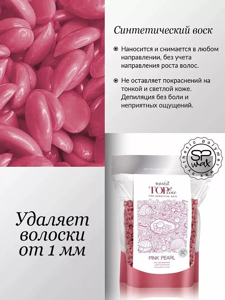 Перламутровый эластичный воск Top Formula на синтетической основе мягко воздействует на кожу и отлично сцепляется с волосками. Благодаря тепловому воздействию кожа распаривается, волоски легко удаляются. Предназначен для депиляции деликатных зон (лицо, бикини, подмышки). Не содержит натуральных ингредиентов, вызывающих аллергию. Воск для депиляции на основе синтетических компонентов обладает особыми адгезивными свойствами: 100% сцепление с волосками, бережное отношение к коже.