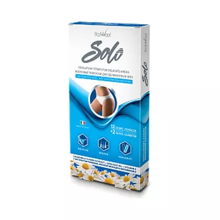 Восковые полоски ITALWAX Solo с экстрактом ромашки, маслом авокадо и витамином E (для деликатных зон) уп. 12 шт. + салфетки